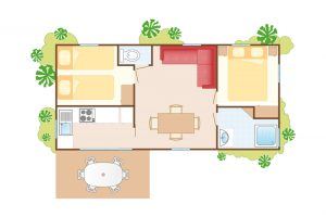 Dans ce cottage climatisé de 34m², plus besoin d’apporter son linge de maison puisque pour les 2 chambres, les draps et les serviettes sont fournis. Avec son vaste séjour ouvert sur la terrasse en bois, et sa cuisine équipée, l’espace de vie comblera vos attentes ! Pour profiter au maximum de l’extérieur la terrasse est composée d’une partie couverte de 8m² et d’un espace découvert de 7m².