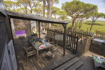 Op zoek naar een groot vakantiehuis voor uw droomvakantie, in gezinsverband of met een groep vrienden? Dit luxe vakantiehuis heeft airconditioning is zeker perfect voor u. Het heeft alle diensten van de 3 en 4 bloemen-categorie, er is plaats voor maximaal 8 personen in vier slaapkamers, waarvan er drie zijn uitgerust met een tweepersoonsbed van 160 x 200 m², terwijl de laatste slaapkamer twee eenpersoonsbedden van 80 x 190 cm heeft. Elke slaapkamer heeft een eigen badkamer. Op het terras is een jacuzzi, een buitendouche, ligstoelen, tuinmeubelen en een grill. TV en toegang tot het Wi-Fi-netwerk van de camping zijn inbegrepen in de huurprijs.