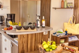 Wszystkie przyczepy kempingowe są sklasyfikowane jako 3 lub 4 kwiaty: przyczepy kempingowe z 4 kwiatami są wyposażone w czajnik, zmywarkę i pościel/ręczniki.